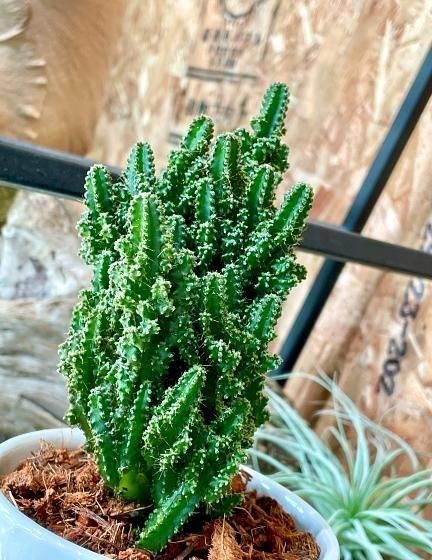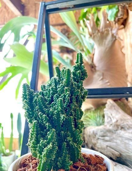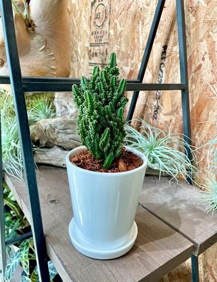 ◆特 徴電磁波を吸収するサボテンとして有名な『セレウス・ペルヴィアナス(通称:セレウスサボテン)』モコモコとしたユニークな姿が愛らしいサボテンです。電磁波サボテンは、NASA(米航空宇宙局)の調査で電磁波を吸収する効果が確認されたそうです。特に注目されるのは、パソコンやスマートフォンから発せられる電磁波を吸収するといわれている点で、オフィスやリビングに置く観葉植物として人気です。乾燥に強く、日当たりのよい場所を好むため育てやすく、インテリア性と機能性を兼ね備えています。空間をスタイリッシュに演出しながら、癒しと安心感を与えてくれる存在です。