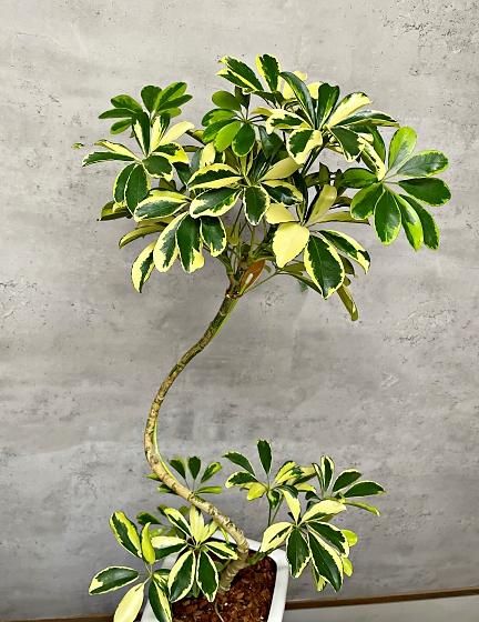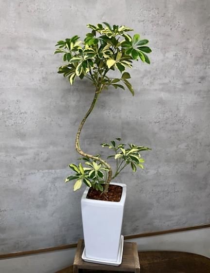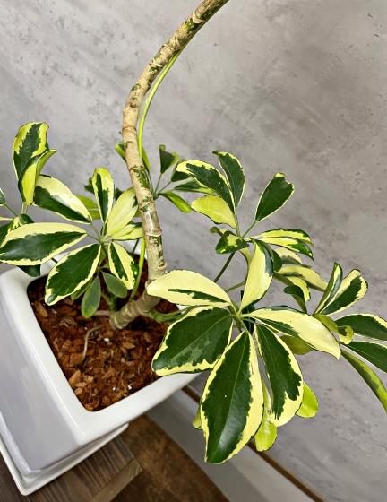 ◆特 徴シェフレラ・ハッピーイエローは、黄色とグリーンのコントラストが美しいシェフレラです。ツヤのあるかわいらしい葉っぱがたくさん付いていて優しい感じの観葉植物です。明るい葉色とネーミングも可愛らしく飾るだけでHAPPYな気分になれそうです。S字に曲がった個性的な樹形をしています。性質も強く丈夫で育てやすいため初心者にもおすすめの観葉植物です。