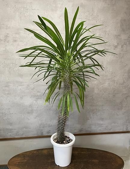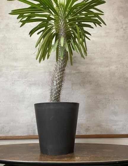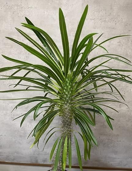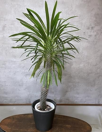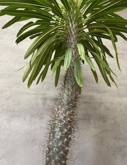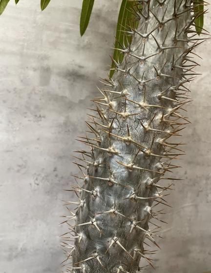 ◆特 徴個性的な姿のパキポディウム・ラメリー。ラメリーは塊根植物と言われている植物の一つで、刺々しいメタリックグレーの幹がかっこいい品種です。パキポディウムの中ではびっしりと生えた棘が特徴です。個性的でインパクトある鬼の金棒のような太い幹は、 生長とともに伸びていきます。パキポディウムの中でも育てやすいい品種です。