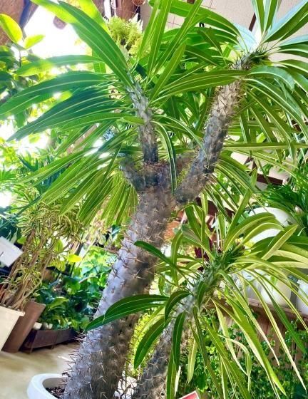 ◆特 徴個性的な姿のパキポディウム・ラメリー。特大サイズの枝分かれブランチタイプです。ラメリーは塊根植物と言われている植物の一つで、刺々しいメタリックグレーの幹がかっこいい品種です。パキポディウムの中ではびっしりと生えた棘が特徴です。個性的でインパクトある鬼の金棒のような太い幹は、 生長とともに伸びていきます。パキポディウムの中でも育てやすいい品種です。